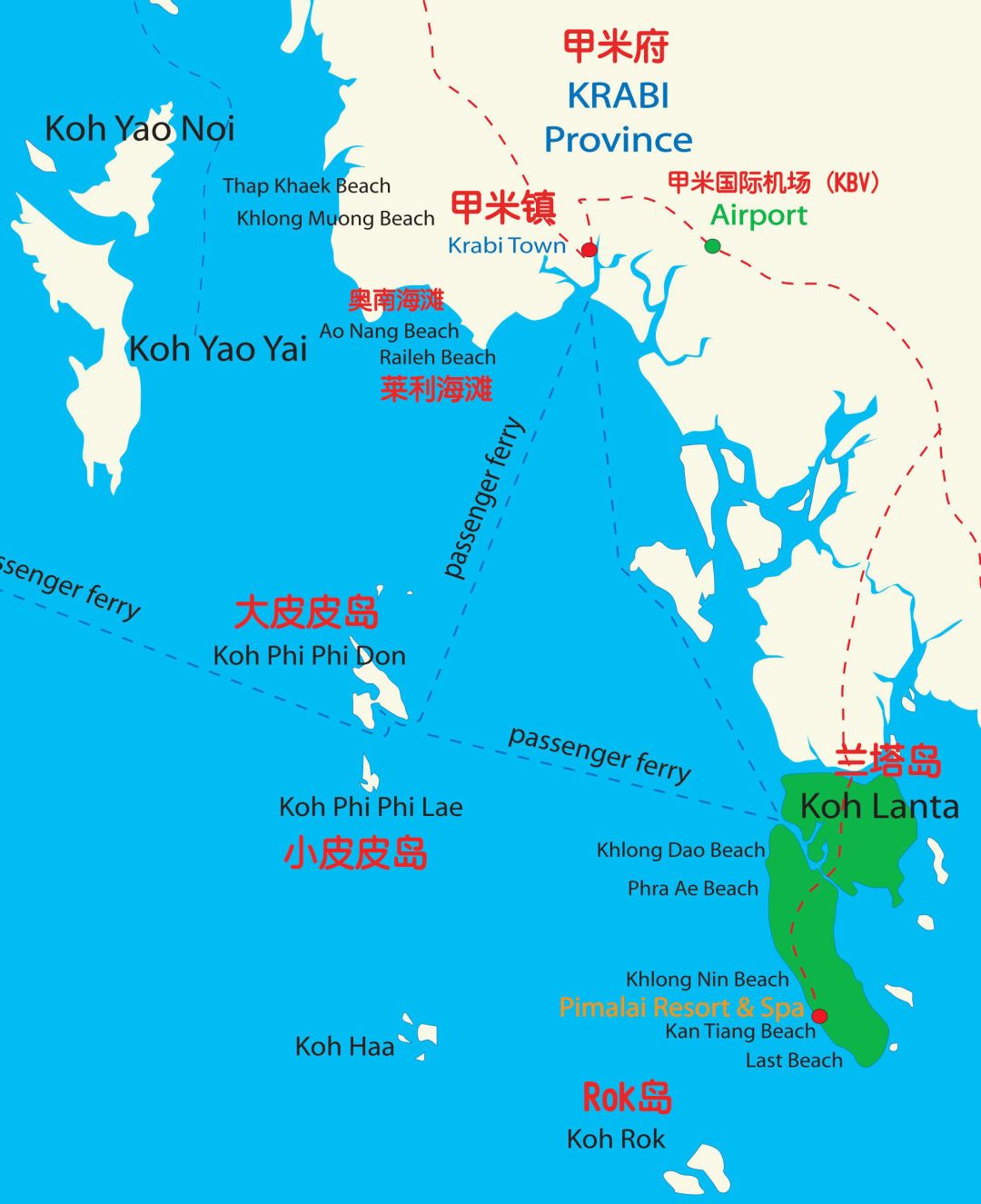 Rok 島是蘭塔島很優秀的離島,據說,這里的海水有七種顏色。陽光直射30米的海底,海里的各類珊瑚礁在陽光的照射下呈現碧綠、墨綠、淺藍等各種顏色。由於高能見度,你也可以與魚兒們暢遊於透明的空間里。
