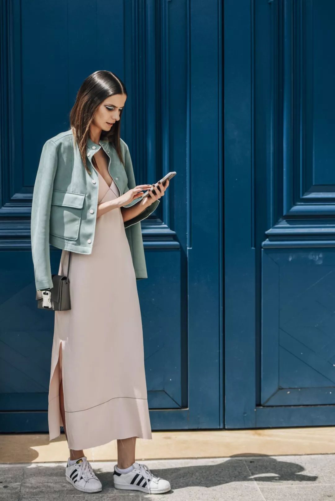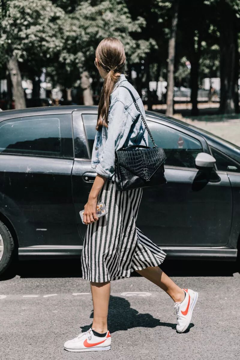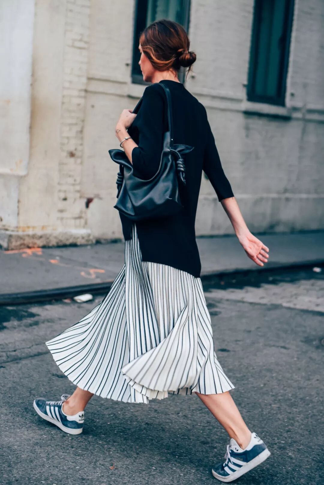運動鞋+連衣裙的搭配,美貌度與舒適度兼具,時髦翻倍。