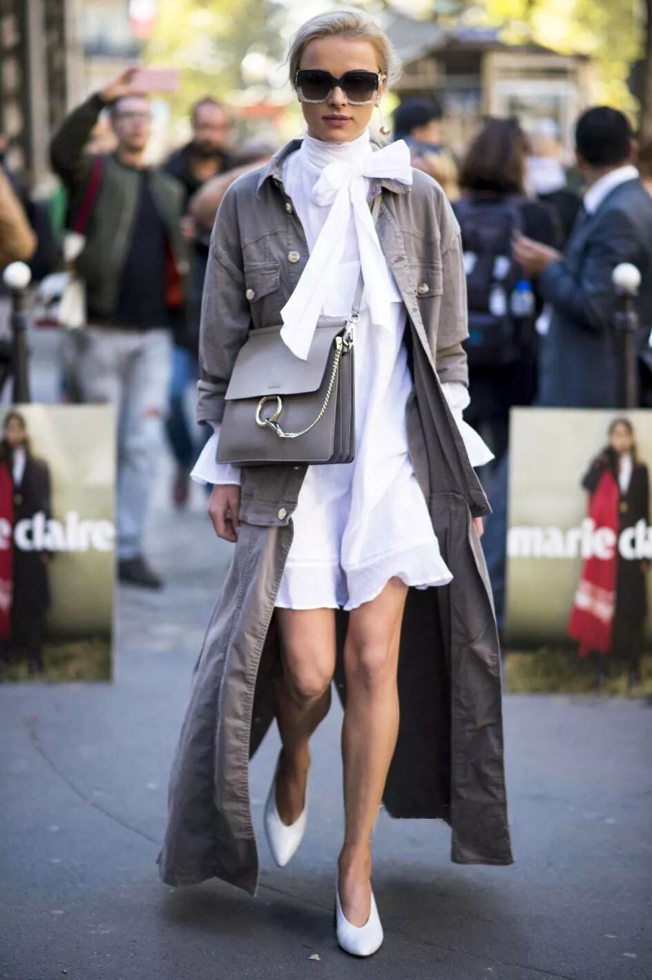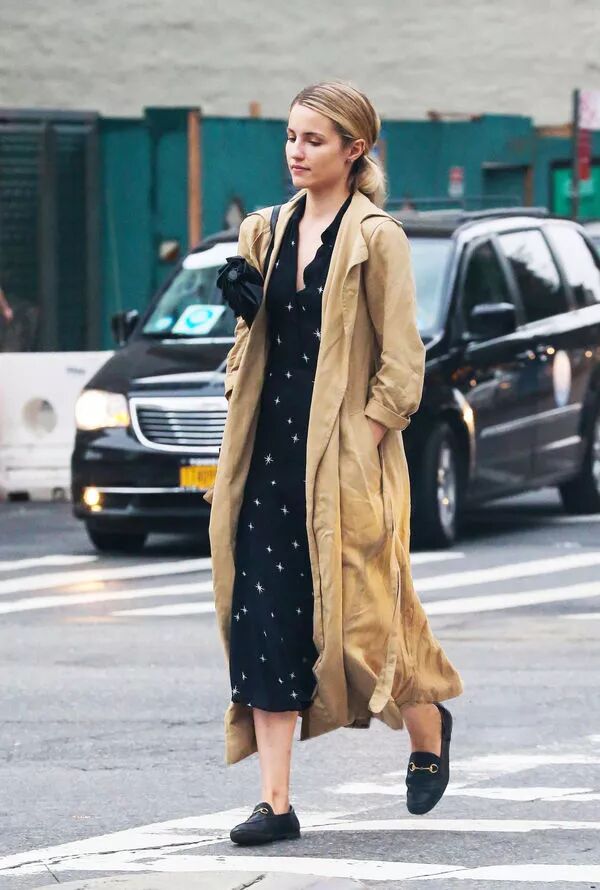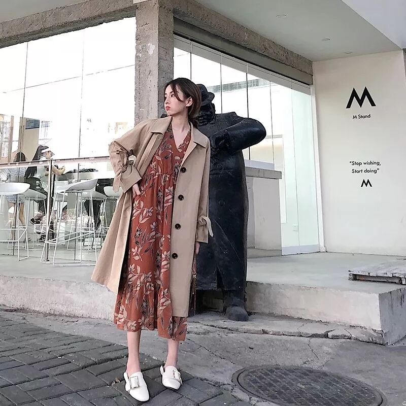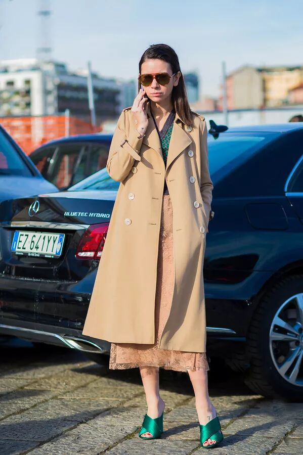 選擇跟風衣長度差不多的裙裝,整體搭配會看起來和諧美觀的多。