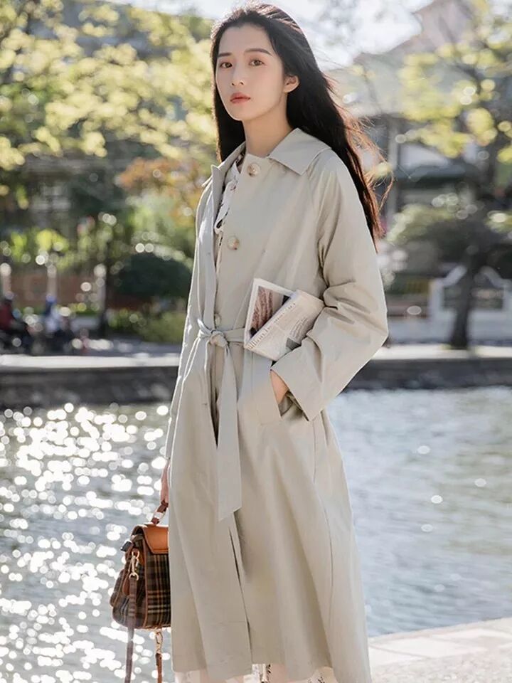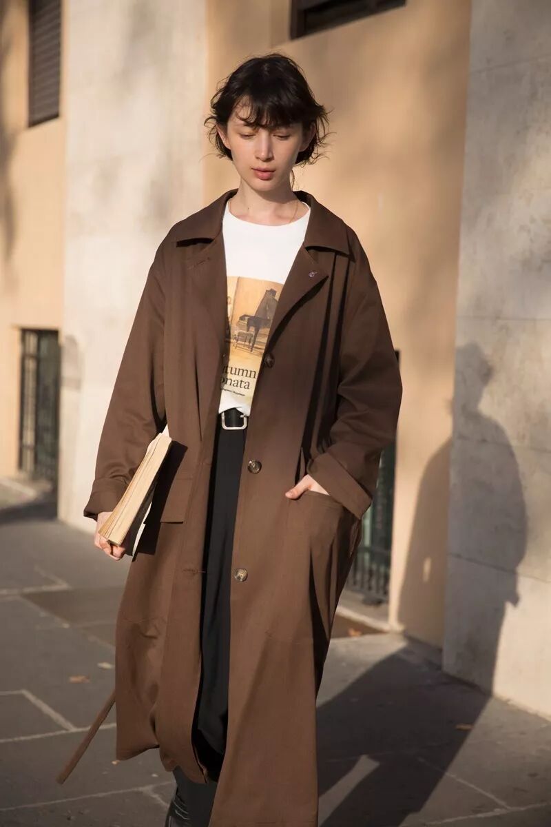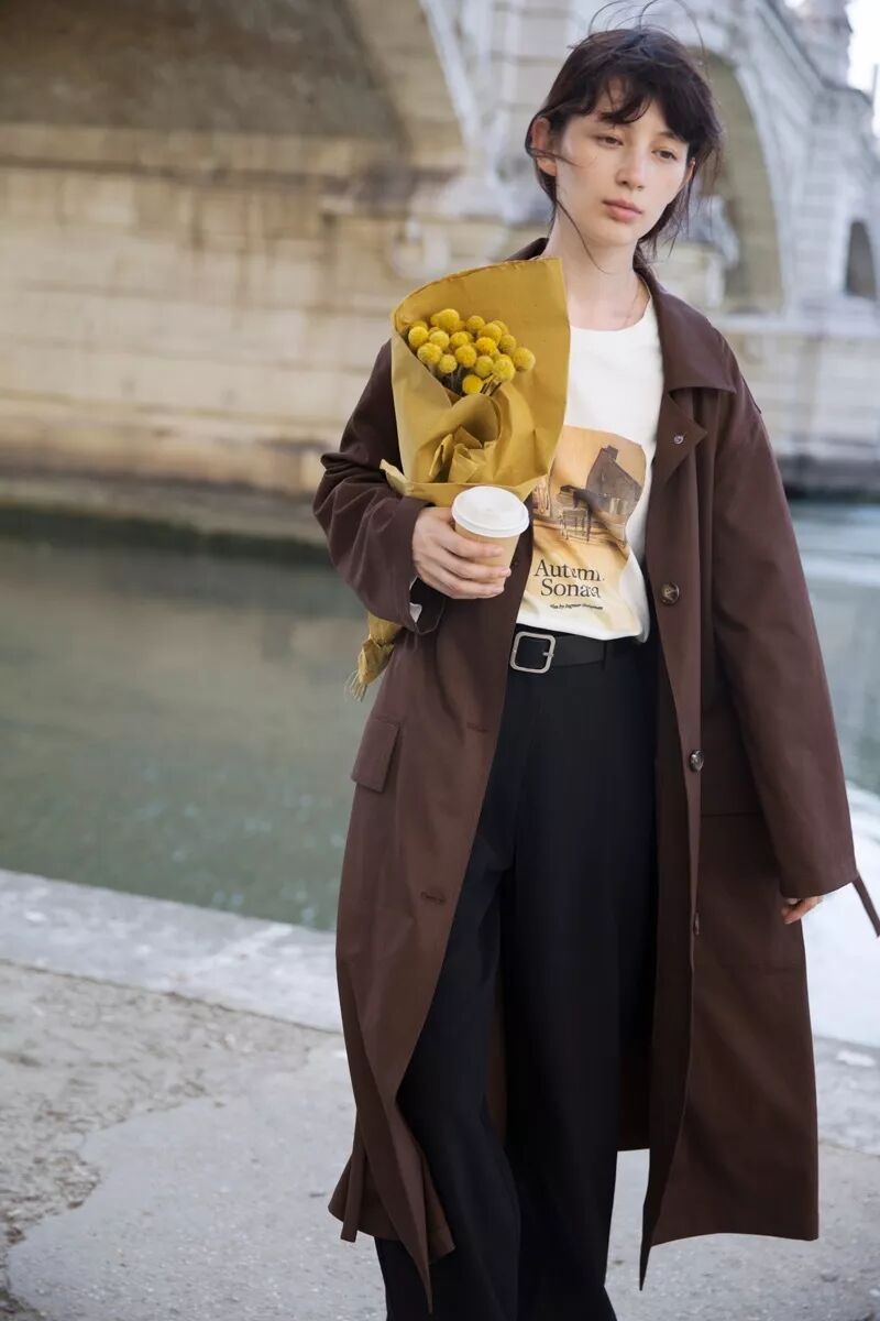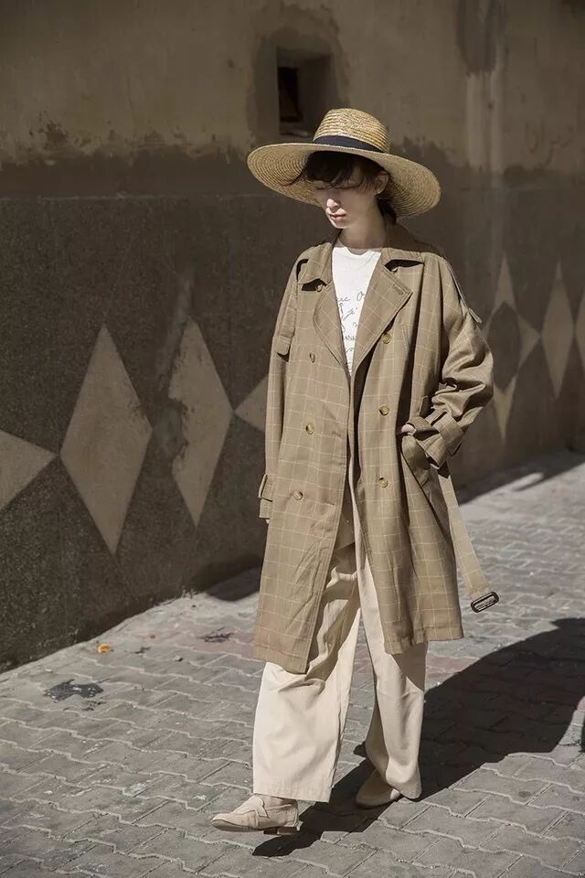 同色搭配顯高級,穿風衣是可以選擇搭配跟風衣顏色相同或接近的內搭。