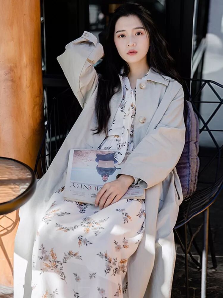 風衣是比較能夠凸顯質感的單品,搭配裸粉色雪紡裙可以碾壓裸粉色的low,提升整體搭配的質感。