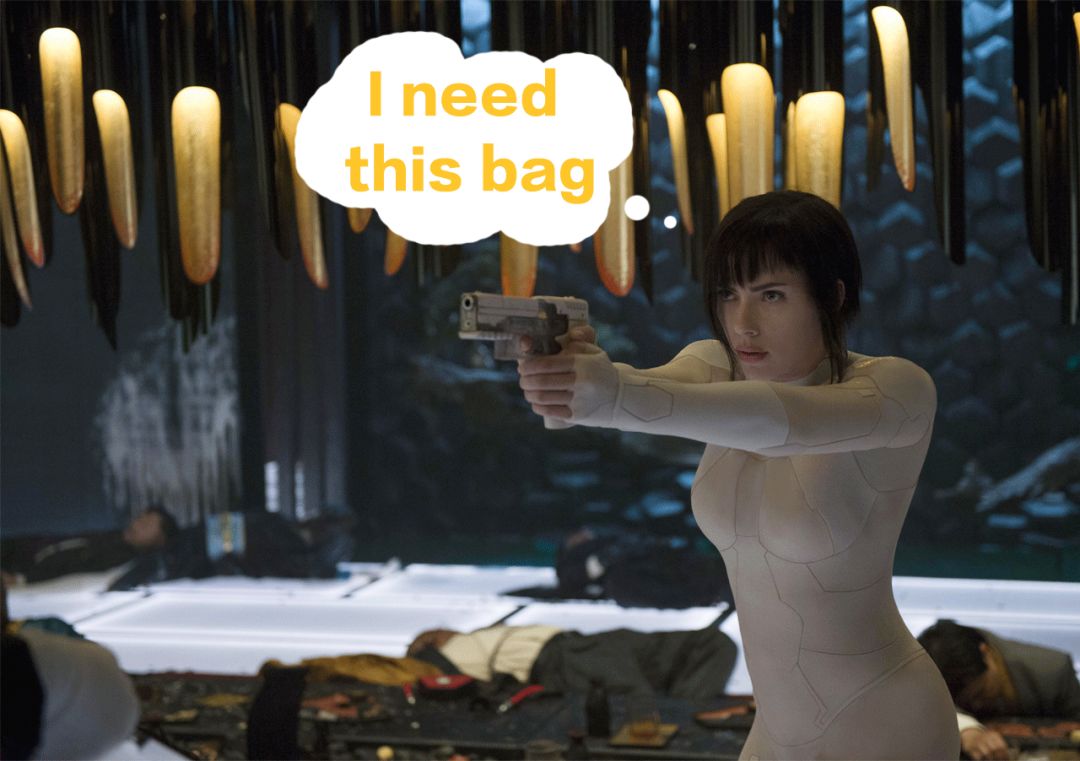 宇博看了也覺得很厲害,這個銀色漆皮和PVC的設計超級有未來感。這麼一看還有些機甲的feeling,拎著它自己好像就成了《攻殼機戰隊》里的寡姐了。