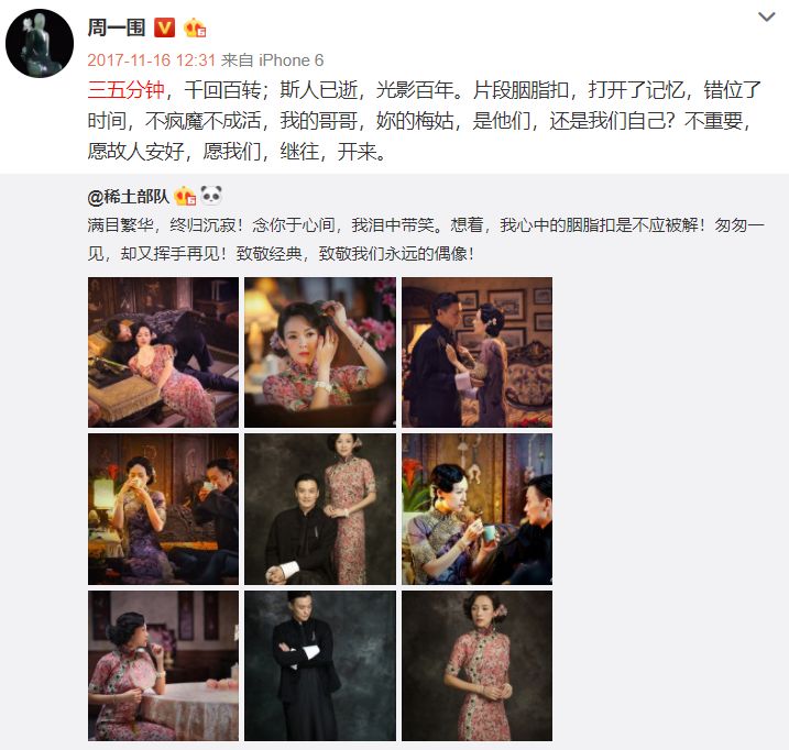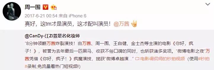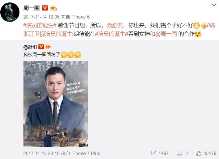 轉PO章子怡和舒淇微博的時候還挺及時的,在節目結束之後,還專門寫了長微博感謝章子怡的賞識,導致兩人還一度傳出緋聞。