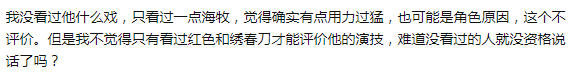 當然也有不少人認為周一圍的演技變油膩了,不是覺得自己有多帥的那種油,而是演戲像炫技,演什麼都一樣,讓人覺得膩了也煩了。