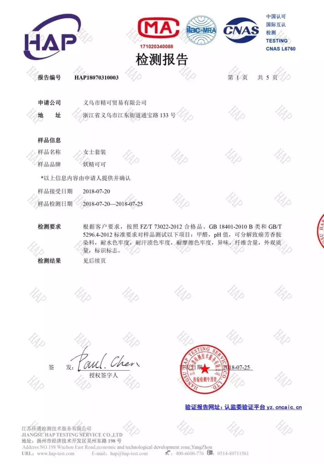 再給你們看看它的質量檢測報告吧,畢竟是貼身穿的衣服,選購的時候一定要慎重考量。