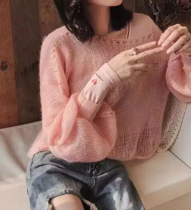 不知道為什麼范范很喜歡這個愛心,也許是少女心發作了。其是粉色款,疊穿今年超火的寬鬆針織毛衣,效果也不錯。