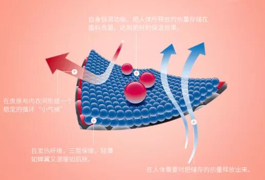官方說它的面料自帶發熱黑科技,把保溫的面料和高吸濕發熱晴綸結合。這是一種功能性的鎖溫面料,能通過面料纖維的分子運動產生熱能,傳導給肌膚從而做到發熱保溫的效果。