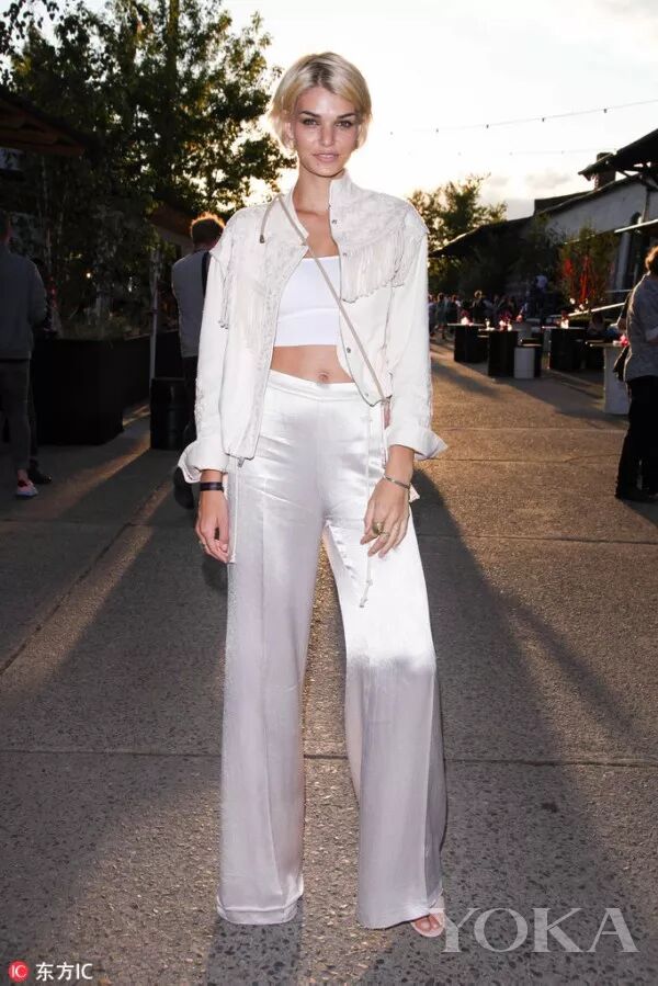 白色的牛仔外套還可以混搭,和絲綢或者運動面料混搭的效果也是相當不錯的,這樣的通體白也十分高級。