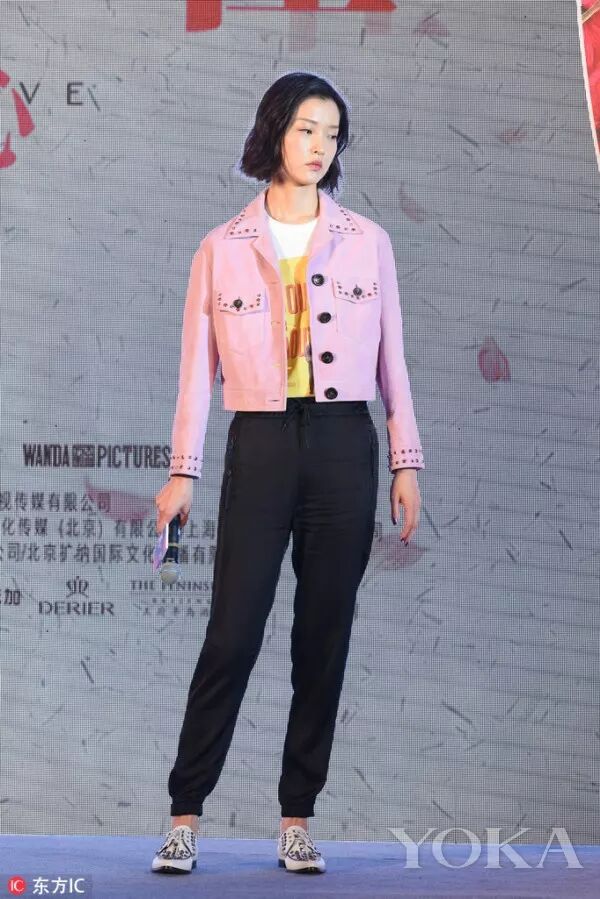 歐陽娜娜一身粉色系牛仔外套,搭配淡藍色牛仔褲,為她的整體造型勾勒出十足的年輕感。