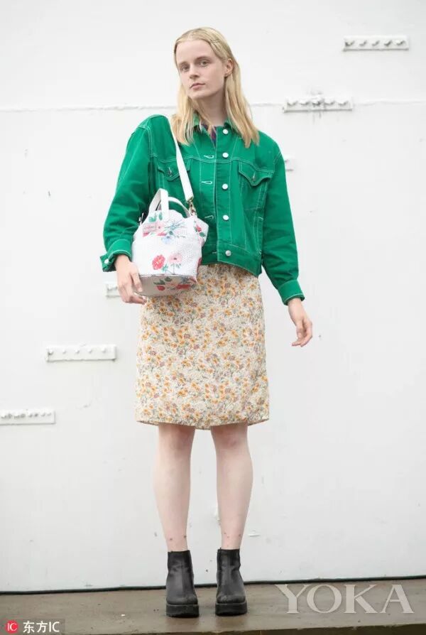 如果還是想穩中求勝,一件綠色的牛仔外套,可以碎花裙,或者闊腿褲都可以。