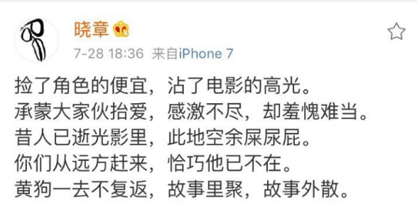 在現實中,胡波導演的自殺去世也給了章宇一記重擊,章宇說會將這記重擊惠存。