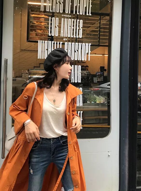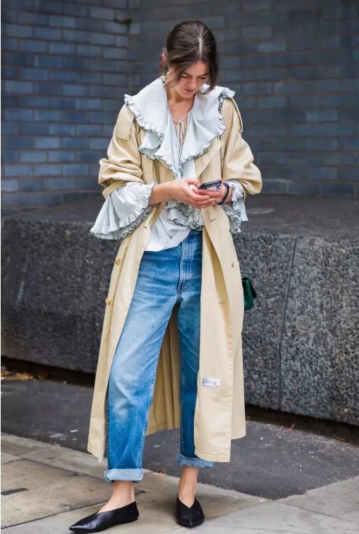 喜歡輕鬆休閒風格的小仙女,千萬不要錯過風衣+牛仔褲+平底鞋的搭配,時髦舒適,滿滿的青春活力。