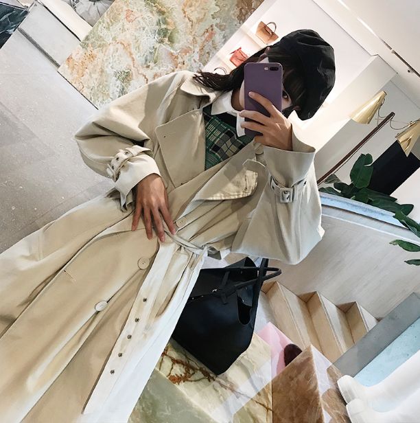 卡其色的中長款翻駁領風衣,再加上一條本布腰帶,經典到不能再經典的款式。