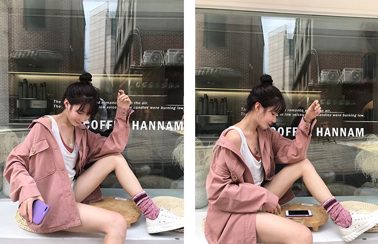 首先,加入夾克或者牛仔外套的搭配是比較basic的風衣疊穿法,也是非常容易模仿的呢。
