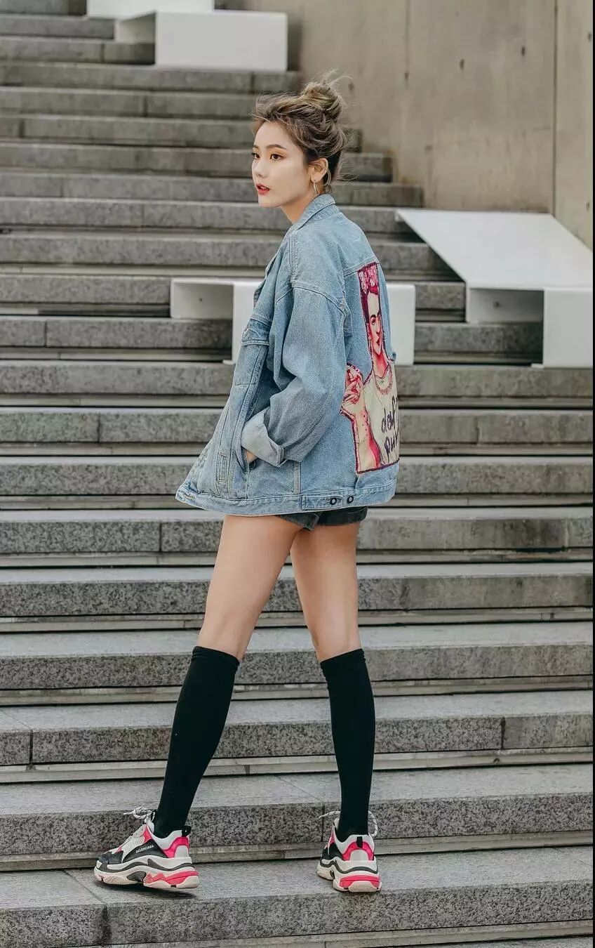 早秋的時候,甜美的女孩們就可以用牛仔外套搭配短褲短裙~打造甜美酷女孩的風格。