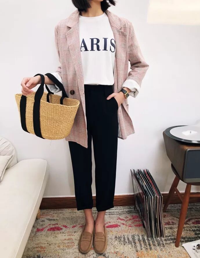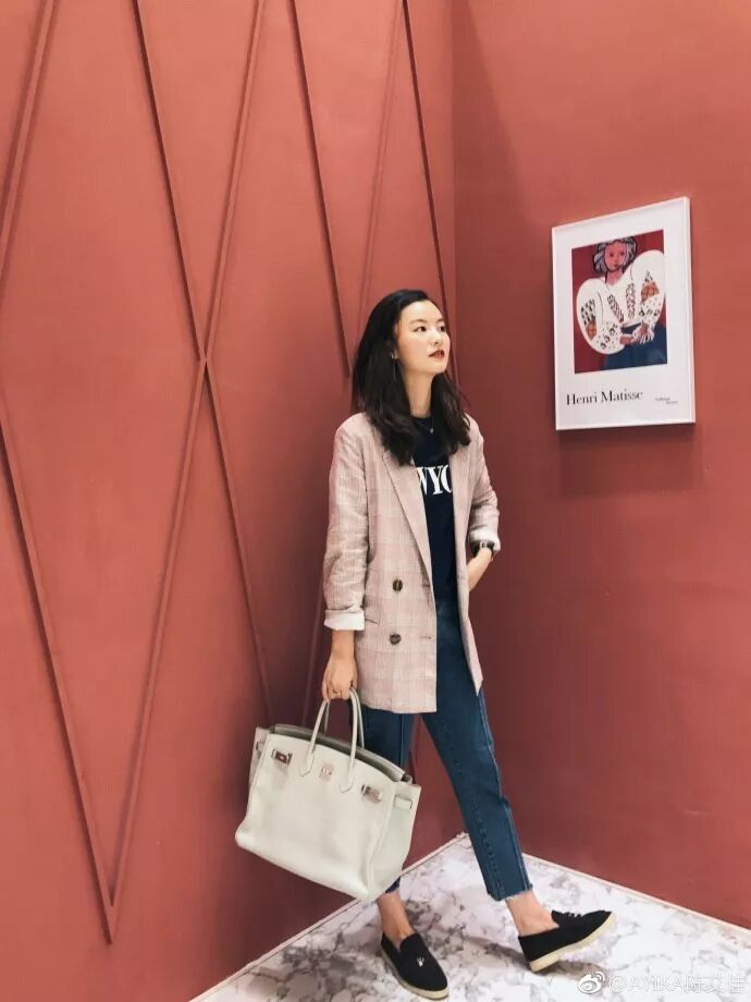西裝外套和牛仔褲搭配是我很喜歡,並且也是當下很流行的ins風打扮。