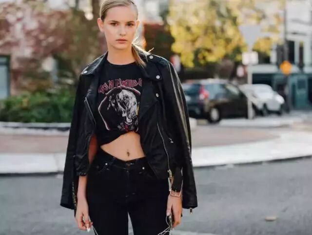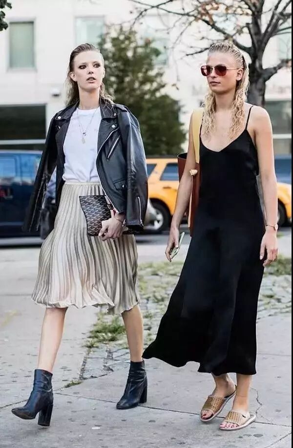 皮衣最棒的組合是跟裙子搭配,也是當下最流行的甜酷、娘man風,沒有過度的中性,夾雜著酷酷的甜味兒~
