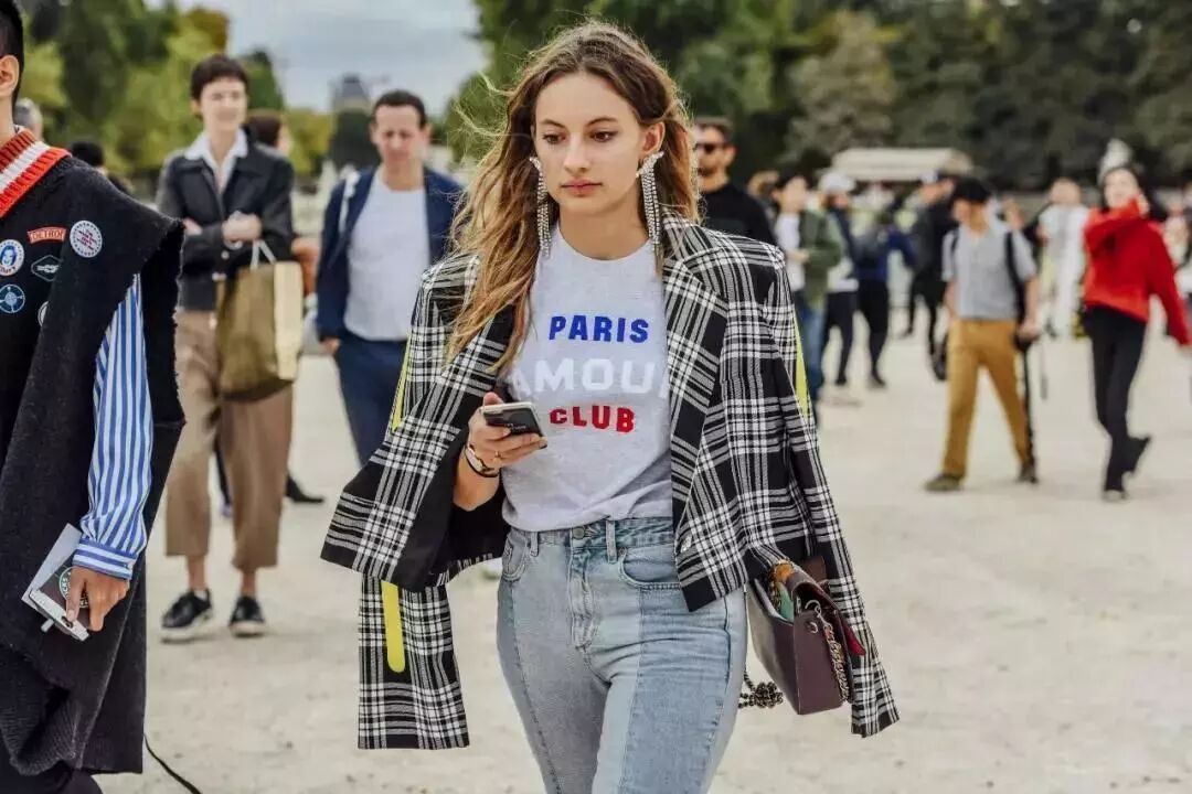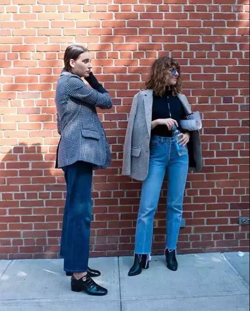 復古的西裝外套,搭配chic的牛仔褲,讓整身的LOOK看起來顯得輕鬆休閒了很多。牛仔褲的搭配減少了西裝的那份刻板厚重感。而且還可以隨意地挽起西裝袖子,露出手腕。