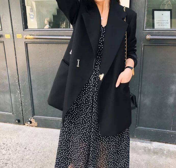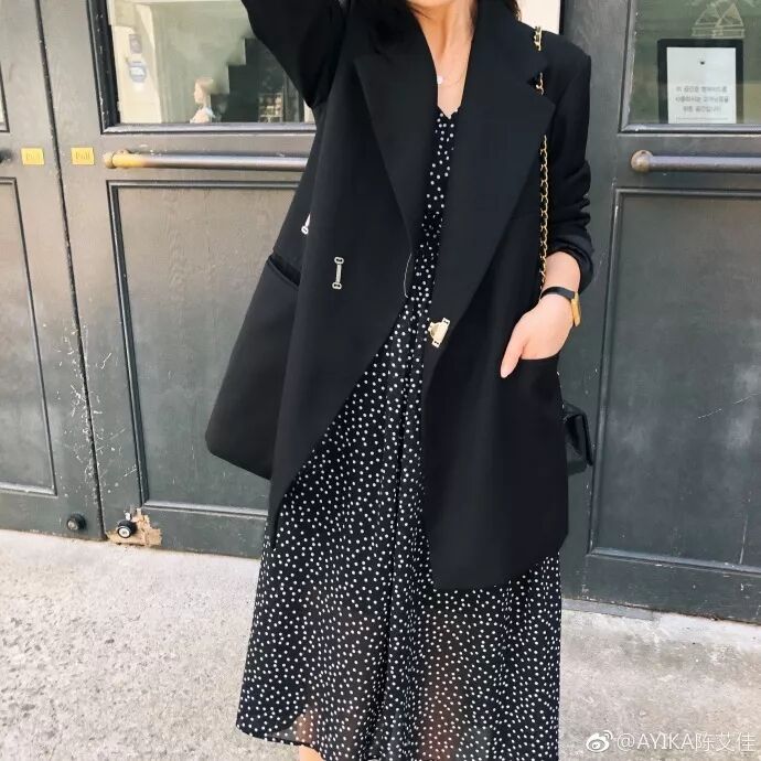 大家在夏天也買了不少又美又仙的裙子了吧,在天氣開始漸漸變冷的時候可以裙子還是可以穿的,套上西裝外套又是一種攻氣+仙氣的組合搭配啦!