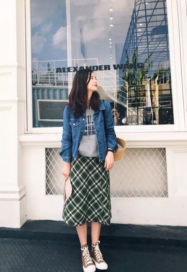 牛仔外套搭配小裙嘰能營造出意外的甜美感,伴隨著俏皮感,可愛無限。