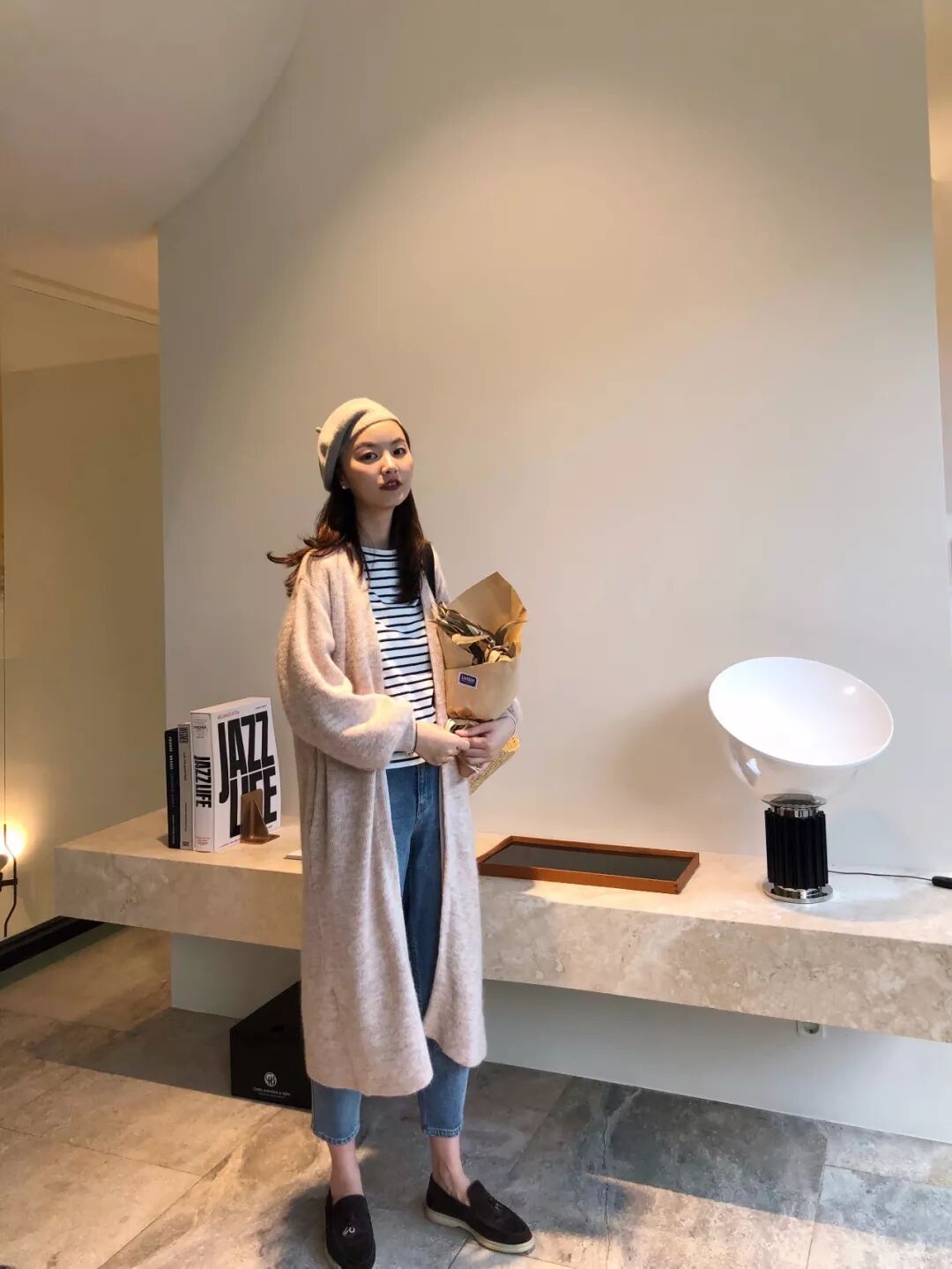 所有外套中,我最愛的就是這款長毛衣外套,馬海毛質地柔軟又貼膚,長長的款式還能很好地遮蓋小粗腿!