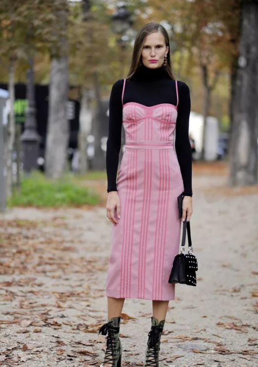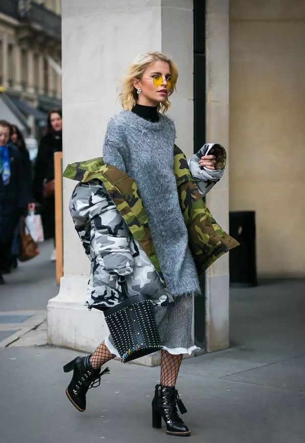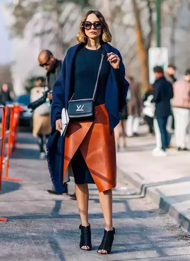 比如一些深色加入一些其他材質的面料,會使造型多了份酷感而少了份無趣。