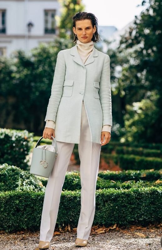 對於不會選擇的人來說,純色的套裝其實就是最簡單穿對純色的方式。