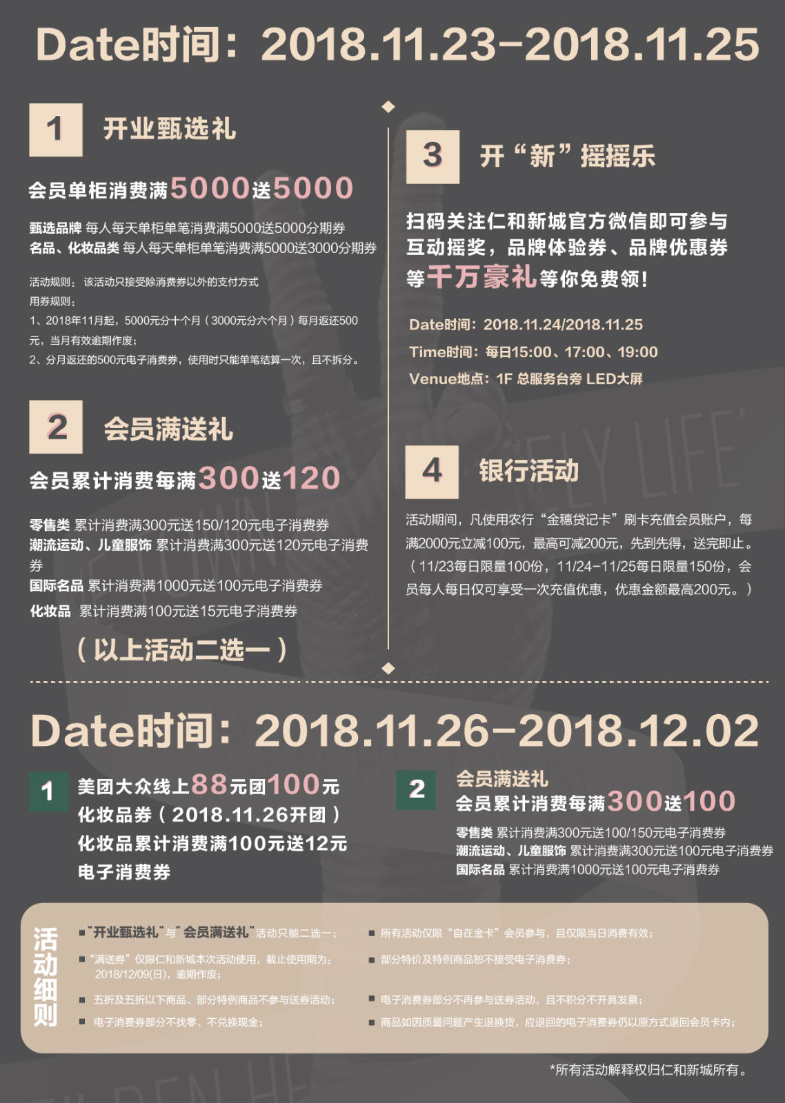 另外,開業期間,仁和新城以精彩紛呈的活動獻禮全城,為市民帶來全新的時尚消費體驗。為期三天,滿5000元返5000元/3000元分期券的尊享會員超大額SP活動;2018中德藝文展的舉行……將時光、映像、玩趣、樂享展現的淋漓盡致。