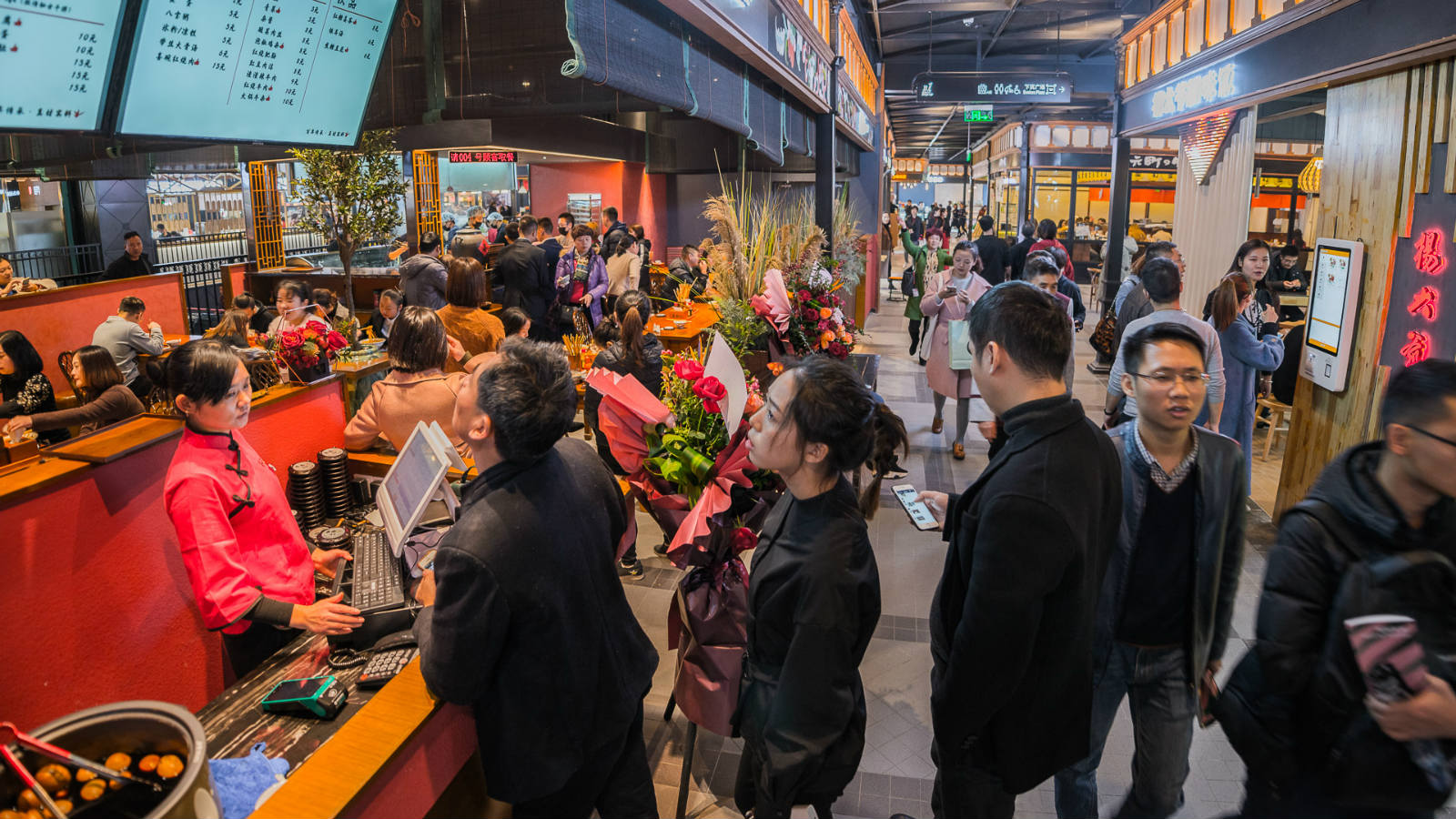 發揚全新空間哲學、舒適安逸的生活節奏,慢調生活的奧妙在唐宮、園里火鍋、大海灣·尋味、道田日料、等幾十家入駐餐飲品牌下一一呈現。現場,餐飲人氣十分火爆,排隊號牌幾乎全部領完。