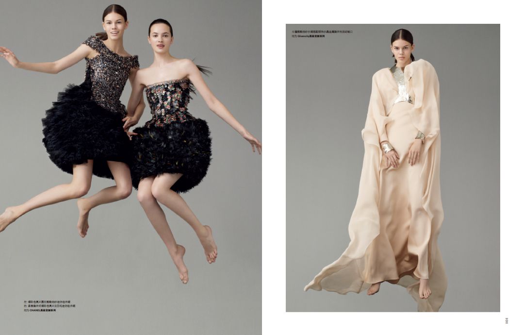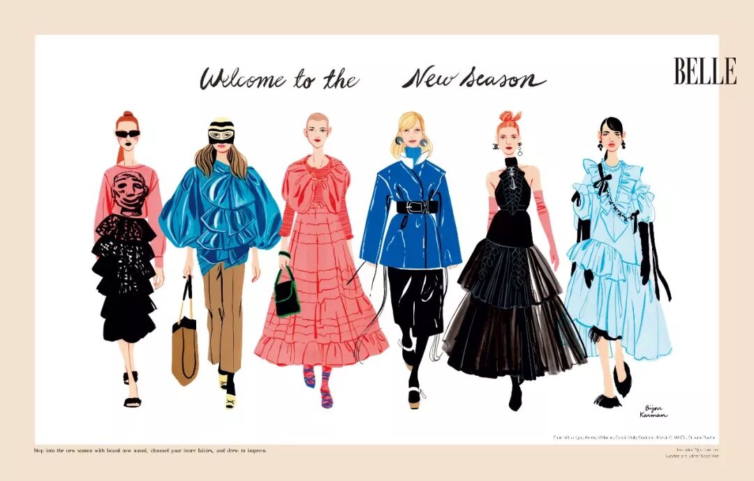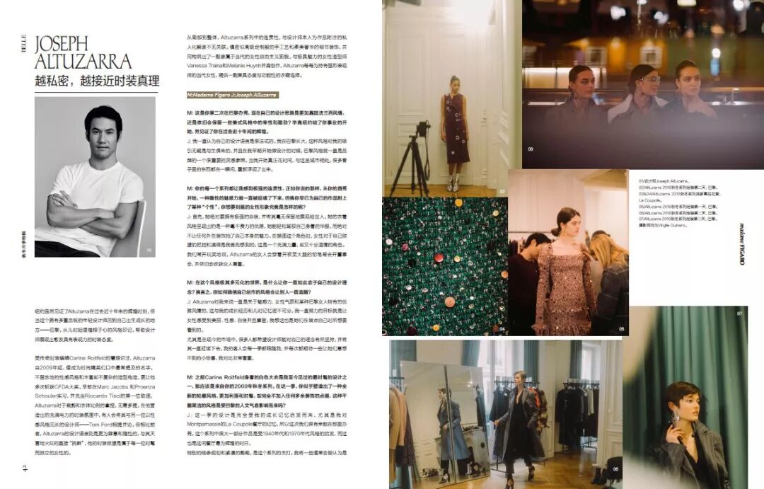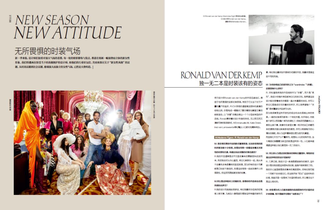 來自洛杉磯的藝術家和時尚插畫師Bijou Karman為我們繪制了開篇插畫,她選擇這個秋冬最具代表性的五個Look,Karman鍾情於那些風格鮮明而有趣的女性,愛好1950~60年代的復古造型,這些全部融入她的創作,她作品中的人物一向被認為是能夠展現強大的女性形象。首次接受國內媒體採訪的荷蘭設計師Ronald van der Kemp對時裝的解讀是另一條獨辟蹊徑的理念,他的設計採用遺留的高定面料,那些剩餘在高定工坊的古董面料被他收集起來,再創作出美輪美奐的時裝,傳承與時代感完美融合。