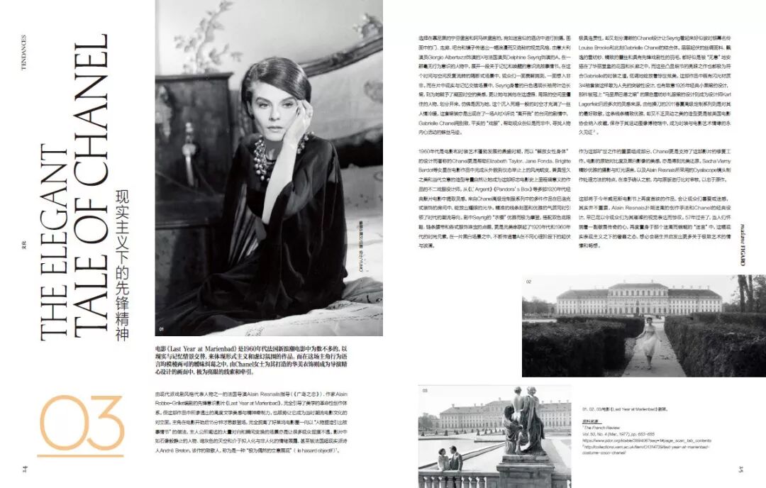 電影《Last Year at Marienbad》是1960年代法國新浪潮電影中為數不多的,以現實與記憶情景交替,來體現形式主義和虛幻氛圍的作品。而在這場主角行為語言均模棱兩可的曖昧糾葛之中,由Chanel女士為其打造的華美衣飾則成為導演精心設計的畫面中,極為亮眼的線索和牽引。