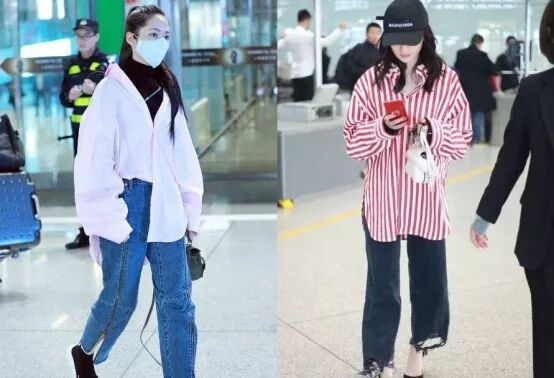 比如一直有著「帶貨女王」名號的楊冪,去年把這種紅色條紋衫帶的火到不行。