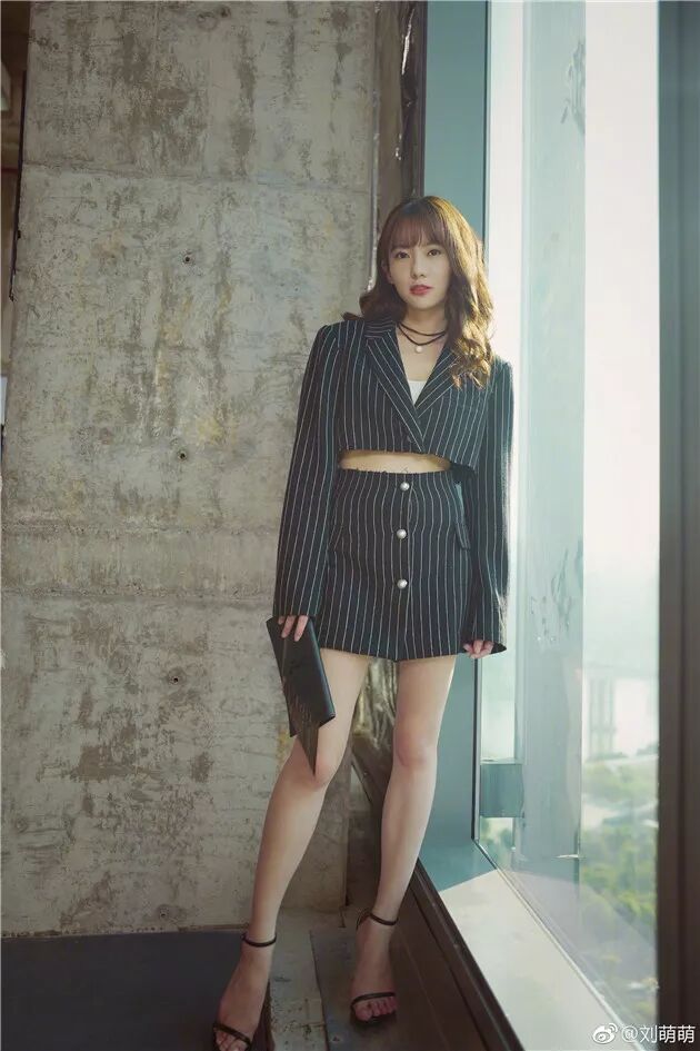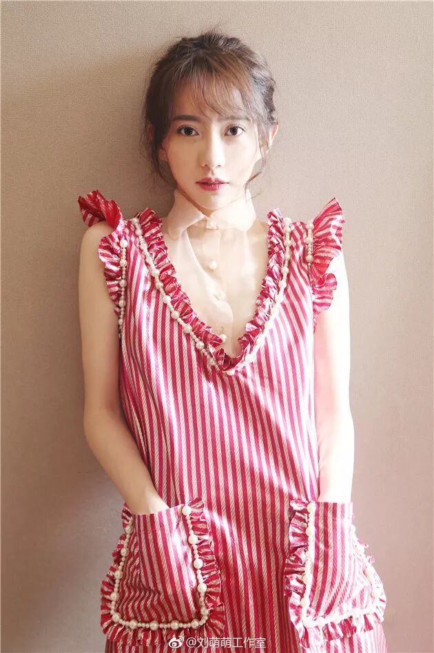 劉萌萌穿條紋裙裝