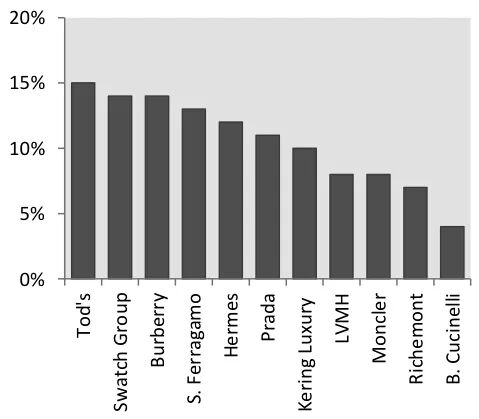其2016財年數據顯示,D&G銷售額在義大利占比24%,歐洲占27%,美洲占13%、日本占6%,其他地區(包含中國)占30%。