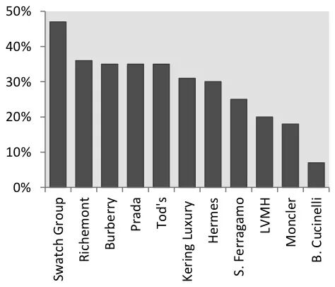 中國人在中國內地奢侈品消費占品牌全球銷售的比重??