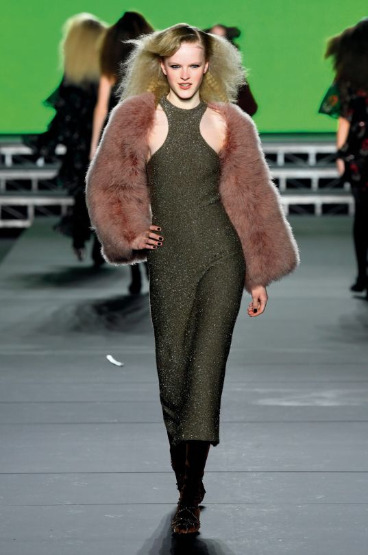 出生於後朋克時期與新浪漫時期的交接點,設計師在這個充滿誠摯致敬的系列中,將個人風格與Sonia Rykiel標誌性的Archive設計元素緊密相連。身著雷同設計出場的模特組合,讓人不禁聯想起品牌多場令人印象深刻的嘉年華風格T台展示。開場模特演繹的四款蒙古羔羊毛皮大衣和配套風雪帽、靴子著重致意一款曾出現在Rykiel 2009年春夏秀場上的設計,這件受創始人艷麗紅發啟發的造型,亦是影響了設計師Martin Margiela用假髮制成的皮草大衣款式。接下來出現的色彩各異的天鵝絨夾克套裝,也極為神似品牌於1980年代推出的跑酷運動裝設計;而曾令Rodarte大受啟發的蜘蛛網狀透視蕾絲連衣裙,則是憑借惹人喜愛的色彩搭配,讓對品牌精髓熟知的看客們頗有似曾相識之感。