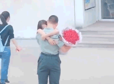 在地鐵看到馬子的男孩,飛奔著跑起來,緊緊擁抱了過去。
