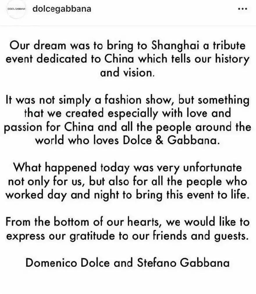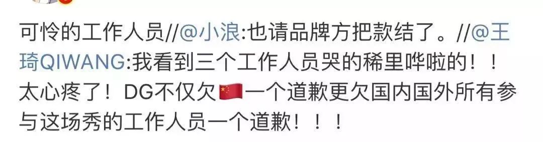 當所有明星模特拒絕出席大秀時,當所有購買了DG產品的人退款時。
