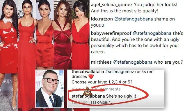 他作為名人,曾在ins上評論女星賽琳娜醜,公然傷害一個女孩的自尊心。