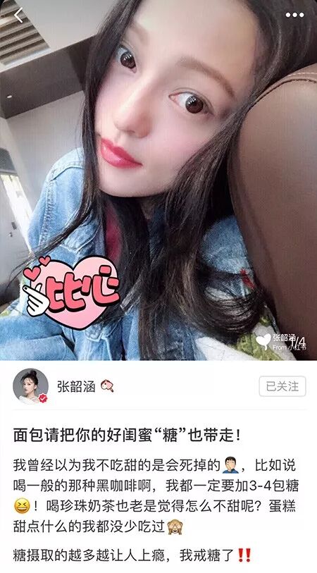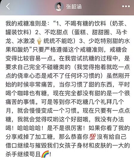 ▲不光是趙薇,張韶涵也是有名的「不吃甜食黨」!曾經嗜糖如命的她為了美,只能狠心「戒糖」。