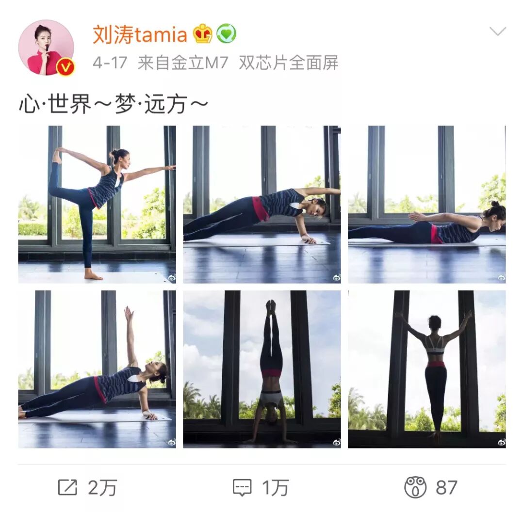 最近wuli安迪在微博曬出了瑜伽照片,並配文「心·世界~夢·遠方~」
