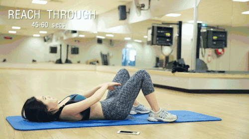 雙腿分開一定的角度,雙膝彎曲腳踩地,雙手並攏,向前彎曲上身的同時,雙臂伸於兩腿之間,做45到60秒,中間休息30秒,每次做4組。