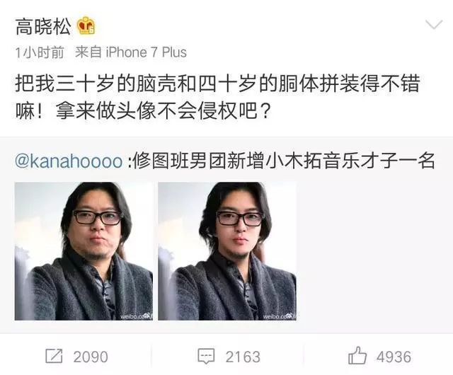 網友看了高曉松的自拍都忍不住幫他P圖,拯救一下他墮落的顏值啊