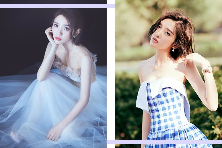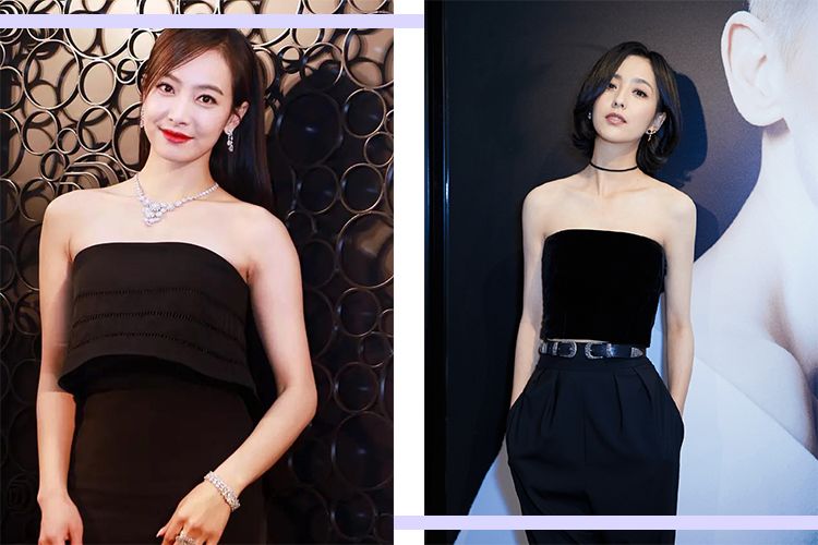 倪妮和佟麗婭身穿亮片和V領收腰吊帶裙