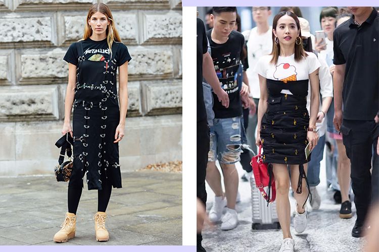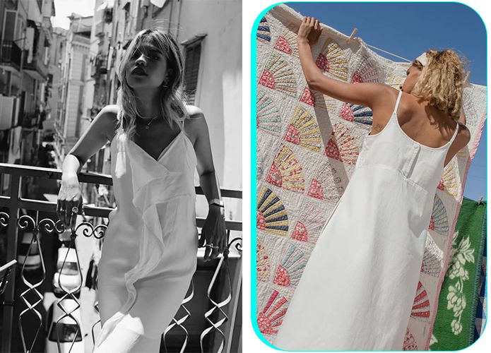 可兒分別演繹純色開叉和蕾絲吊帶裙