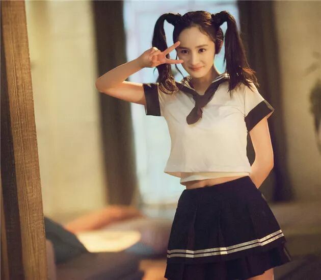 帶貨女王楊冪在電影《何以笙簫默》中也曾有過這樣一款穿著水手服的少女感造型。大冪冪還紮起了俏皮的雙馬尾。不得不承認在雙馬尾和水手服的雙重減齡下,楊冪就是那位永遠十八歲的活力少女。