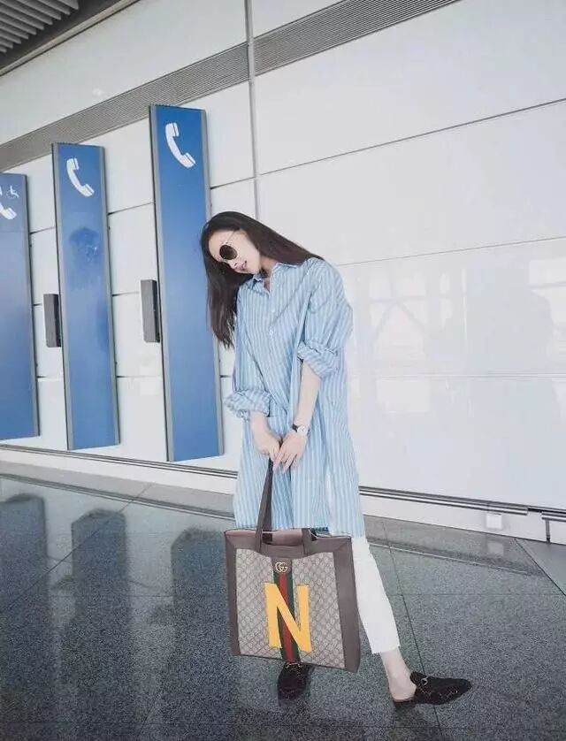 作為行走的穿衣教科書的倪妮,輕鬆將簡單的條紋襯衣+白褲子,穿出了清爽的時髦感,顯得舒適又養眼。