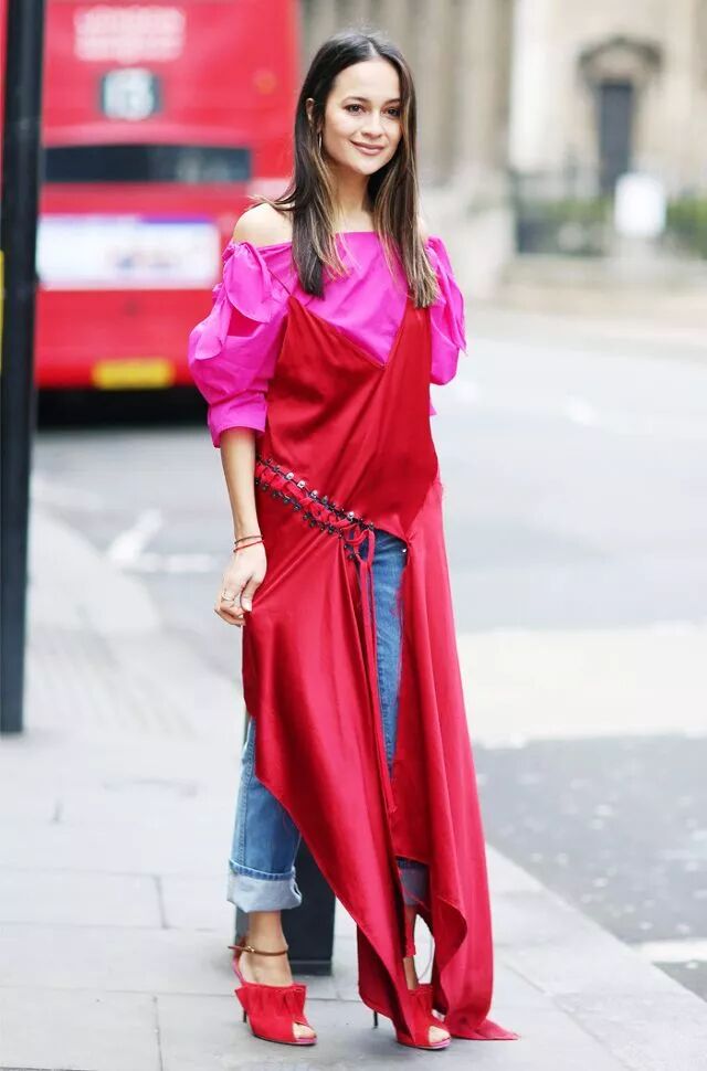 自帶性感屬性的吊帶裙,與褲裝混搭,顯得個性有氣質,整體look時髦又嫵媚。