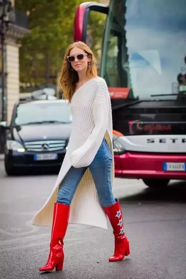 自帶治愈氣息的針織裙與率性的牛仔褲組合,保暖又時髦還耐看。