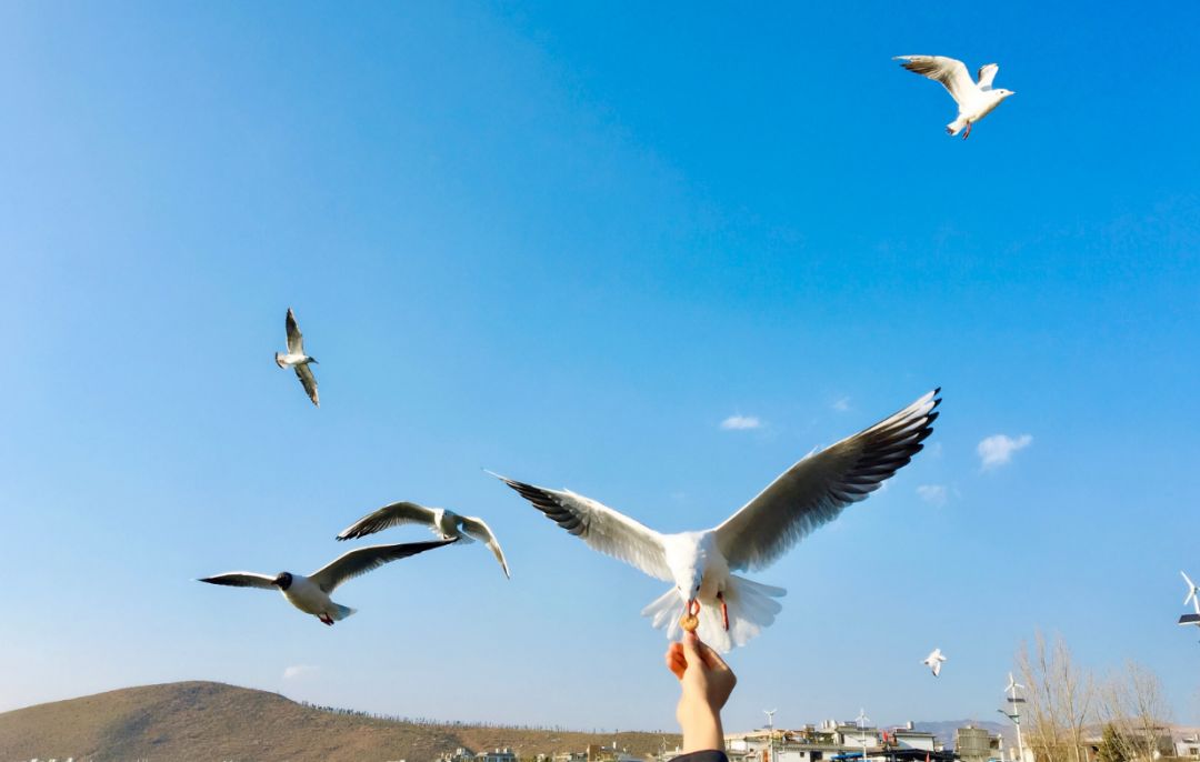 買一袋小魚幹,坐在岸邊或是小島上,等待著熱情的鷗鳥懸停在半空中啄食。當你不急不躁的時候,心情自然就會好起來。